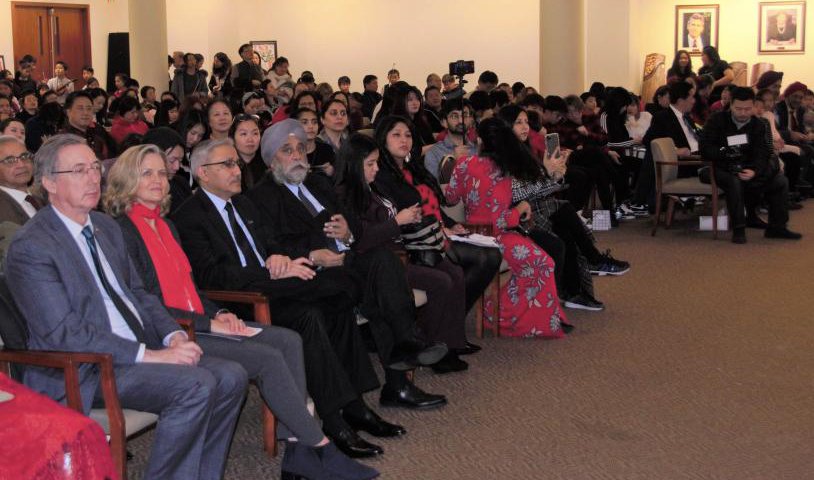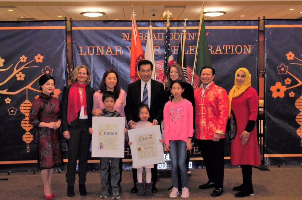 300多位中美嘉宾济济一堂,观看当地华人业余文艺团体和师生们表演的精彩节目。纳苏郡郡长库伦 (Laura Curran)、纽约州参议员詹姆斯· 高克伦(James Gaughran)和各族裔美国朋友莅临演出会场,为华人送上新春祝福。