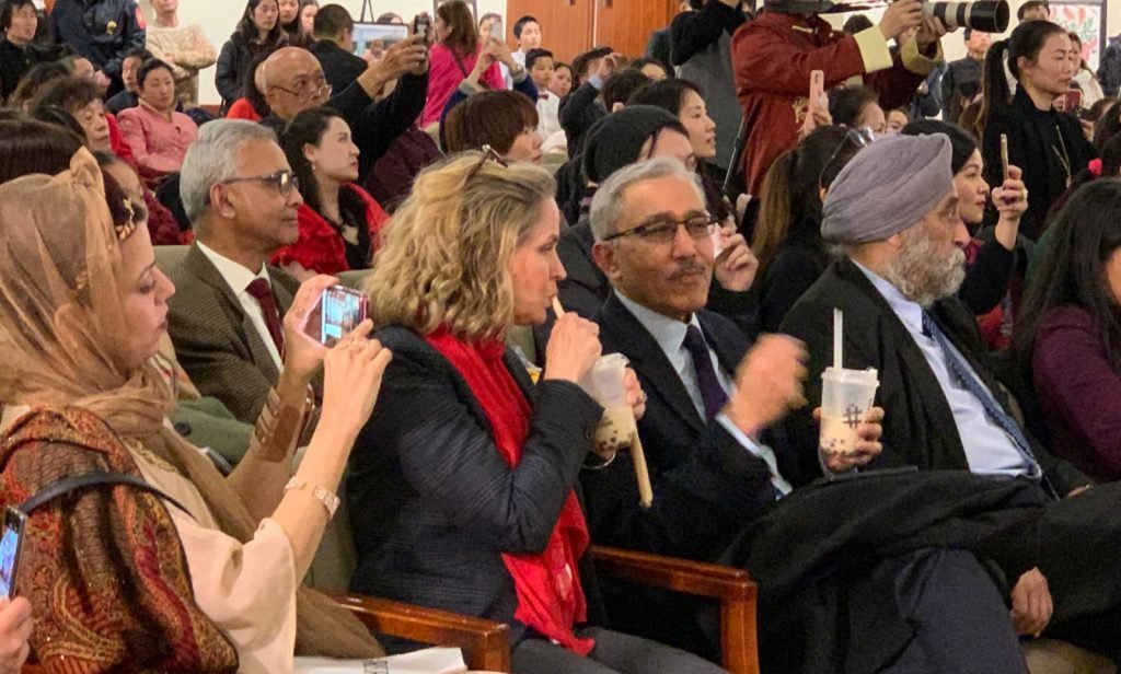 库伦郡长等民选官员们高兴地品尝了特色奶茶,鼓励各族裔消费者继续踊跃光顾中餐馆和华人超市。