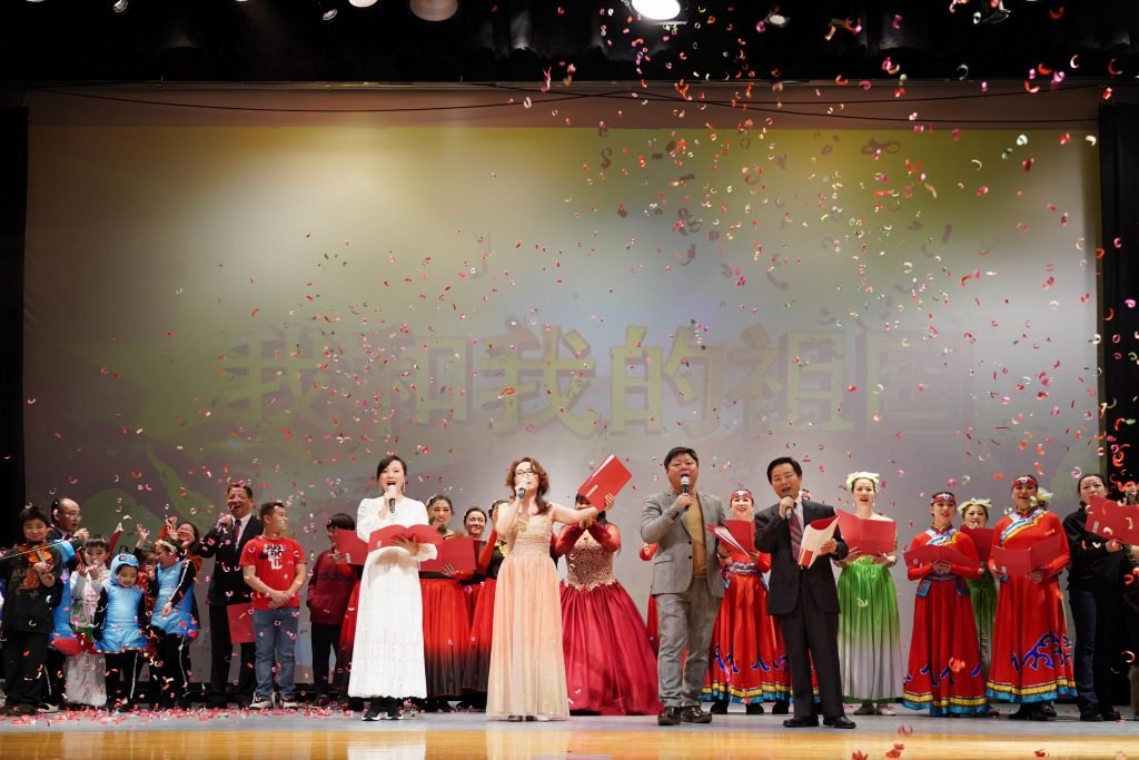 最后,文艺表演在大合唱《我和我的祖国》歌声中圆满结束。